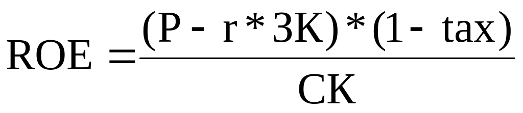 где ROE – рентабельность собственного капитала, коэф.; СК – величина собственного капитала, тыс. руб.; ЗК – величина заемного капитала, тыс. руб.; r – дисконтная ставка инвестиционного проекта, коэф.