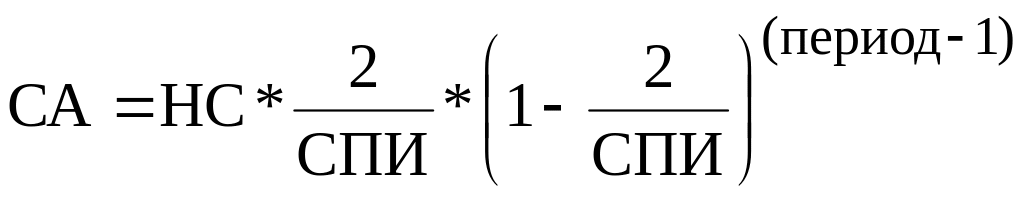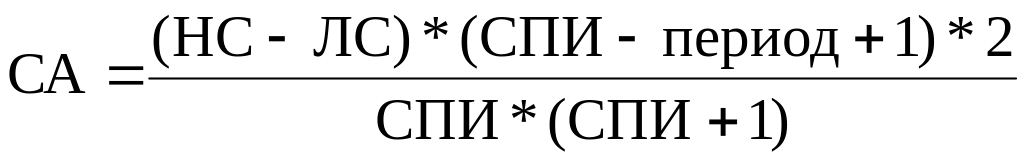 где СА– сумма амортизации, руб; НС – начальная стоимость ОС, руб; СПИ –срок полезного использования ОС, мес.; период – время использования ОС на момент начисления амортизации, мес.
