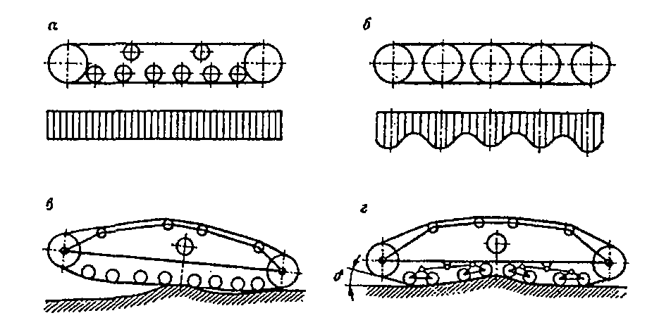 По способу передачи давления на грунт различают многоопорные и малоопорные гусеницы.