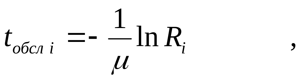 При показательном законе распределения, значения tобсл рассчитываются по формуле: