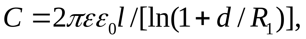 В загальному вигляді електрична ємність циліндричного конденсатора визначається рівнянням: