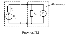 3 Измерение падения напряжения на участке цепи вольтметром с конечным входным сопротивлением (рисунок П.3)