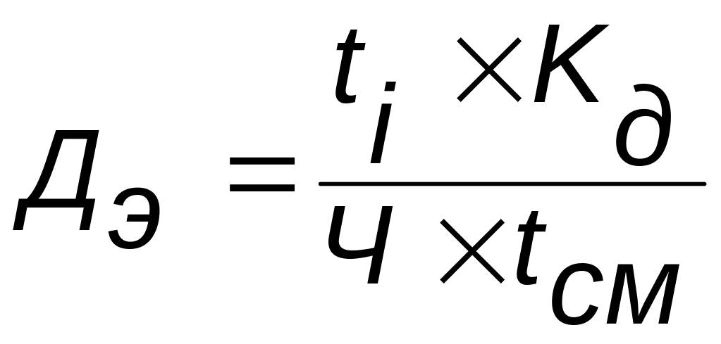 Продолжительность выполнения работ (Дэ) по каждому этапу ТПП определяется по формуле