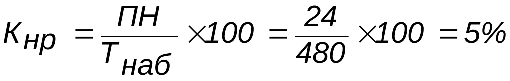 Потери времени по причинам не зависящим от рабочего (Кнр), рассчитывается по формуле