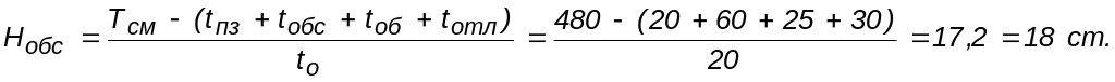 Определить норму обслуживания станков для одного рабочего (Нобс):