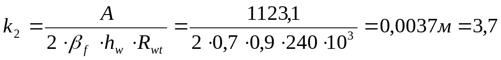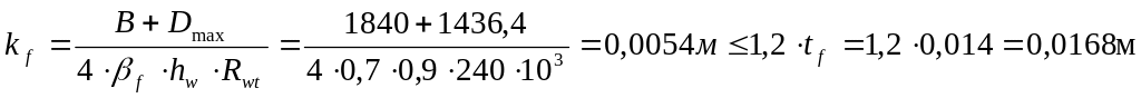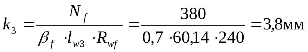 Толщину шва k3 рассчитываем на сжимающее усилие Nf в поясе балки пролётом, равным bн=6м, и высотой сечения hw - a=900-100=800мм=80см: