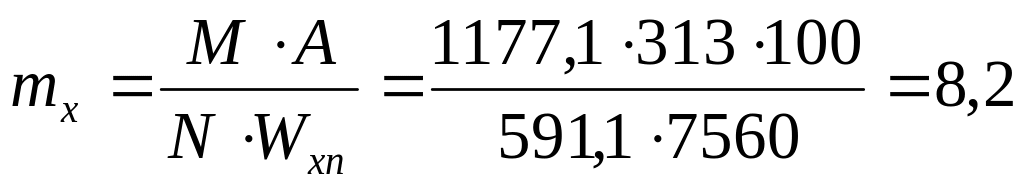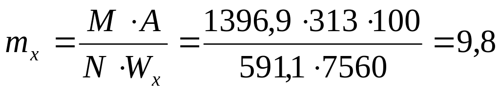 Устойчивость верхней части колонны в плоскости действия момента проверяем на сочетание усилий M и N, которое дает наибольшее сжатие волокна в сечении C. Определим относительный эксцентриситет по максимальному моменту в верхней части колонны M=1396,9кН∙м