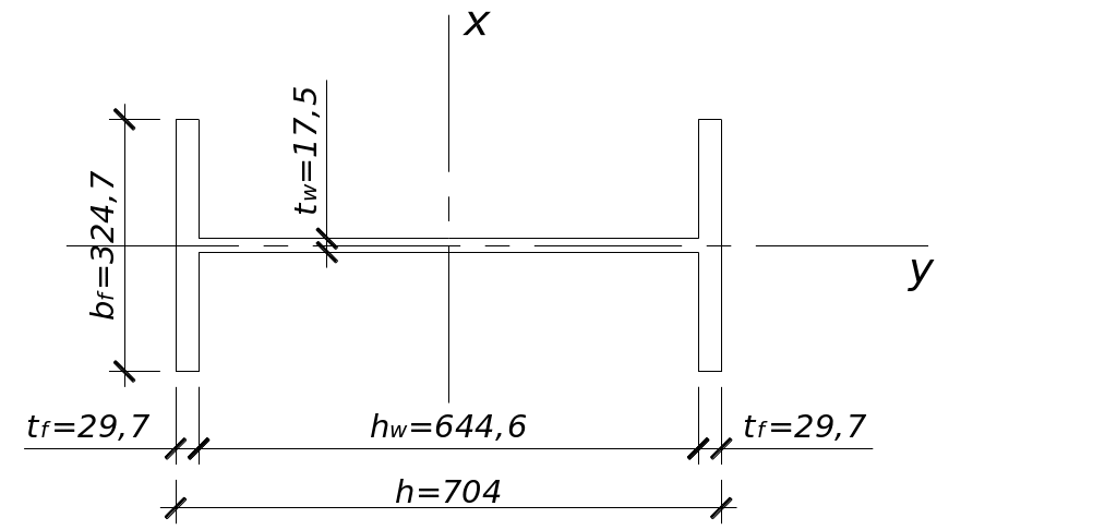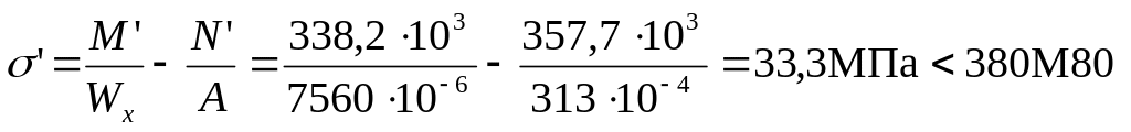 Передача усилий от верхней части колонны к нижней осуществляется через фрезерованные торцы колонн и стыковую сварку. Растягивающие напряжения не должны превышать Rwy для полуавтоматической или ручной сварки. Напряжения необходимо проверить для обоих поясов соответственно по усилиям M, N и M’, N’. Для проверки напряжений геометрические характеристики сечения верхней части колонны:
