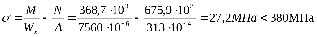 Устойчивость колонны из плоскости действия момента обеспечена.