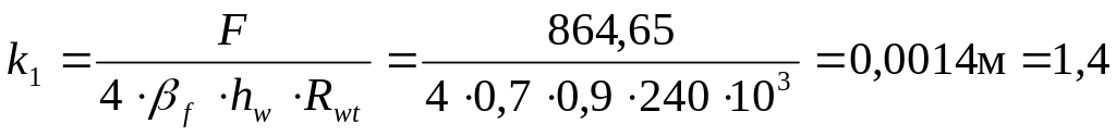 Толщину сварных швов k1 определяют из условия среза их силой F: