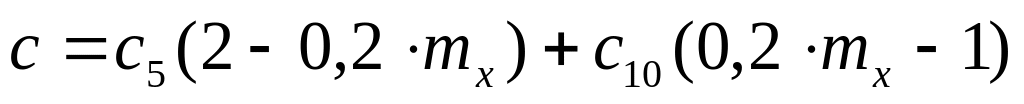 Так как 5<mx<10, то коэффициент с вычисляем по формуле: