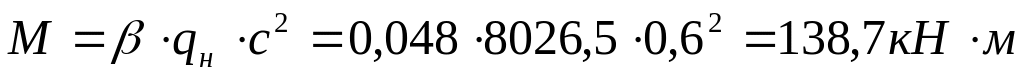 Так как b/c=226,5/600=0,4, следовательно β=0,048.