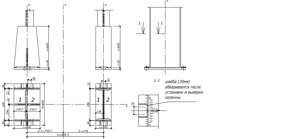 В сквозных колоннах раздельные базы проектируют как для центрально сжатых стоек. Сжимающие усилия для расчета наружной и внутренней баз определяют по формулам: