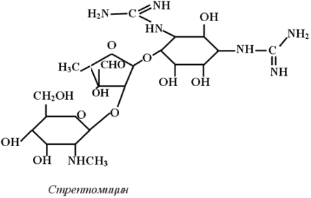 Антибиотики чрезвычайно многообразны по своей химической природе и по механизму действия. Некоторые из широко используемых антибиотиков взаимодействуют с рибосомами бактерий, тормозя синтез белка в бактериальных рибосомах, в то же время практически не взаимодействуют с эукариотическими рибосомами. Поэтому они губительны для бактериальных клеток и мало токсичны для человека и животных. К их числу относятся хорошо известные стрептомицин, хлорамфеникол (левомицетин):
