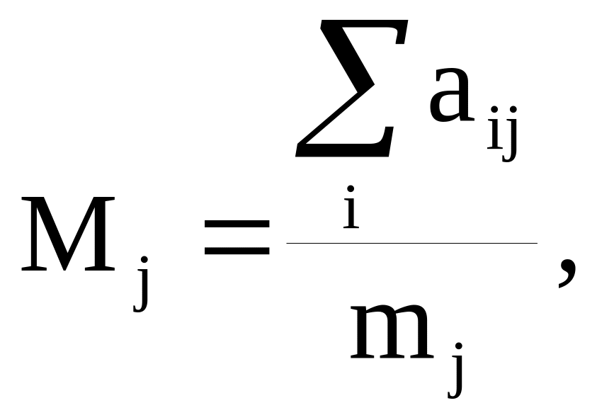 Средний ранг j–го объекта Мj рассчитывается по формуле: