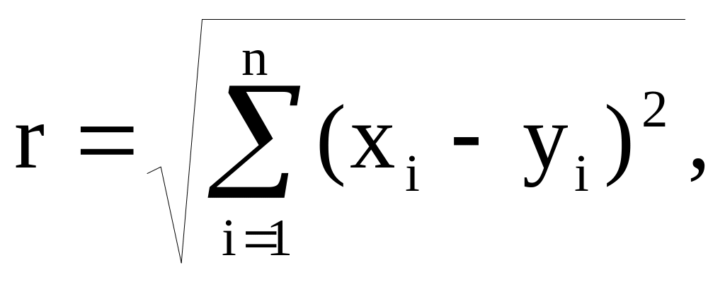Оба рассмотренных выше метода могут быть использованы только при оценке объекта по одному фактору. Если объект оценивается по нескольким факторам (по n факторам), то для измерения согласованности между оценками ДВУХ экспертов (или между отдельным экспертом и групповым мнением) рассчитывают евклидово расстояние между ними, рассматривая каждую оценку, как точку в n–мерном пространстве: