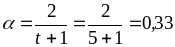 Задаємося параметром згладжування ( ) або обчислимо його за формулою
