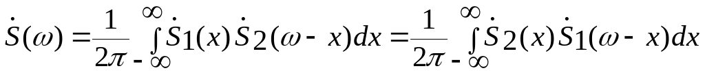 Итак, спектральная плотность произведения двух сигналов находится операцией свертки с множителем 1/2 спектральных плотностей сомножителей.