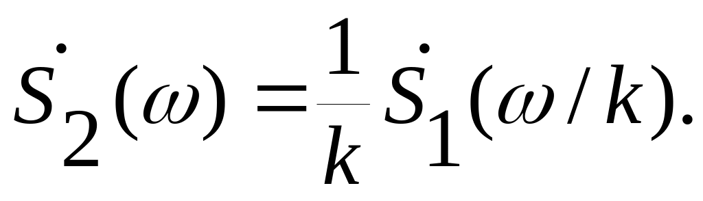 Итак, в частности, сжатие сигнала в k раз на временной оси во столько же раз расширяет его спектр и уменьшает интенсивность спектральной плотности.