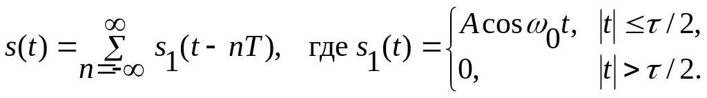 7. Найдите и изобразите графически спектральную плотность периодической последовательности прямоугольных видеоимпульсов, модулированной по амплитуде гармоническим колебанием с частотой 1: