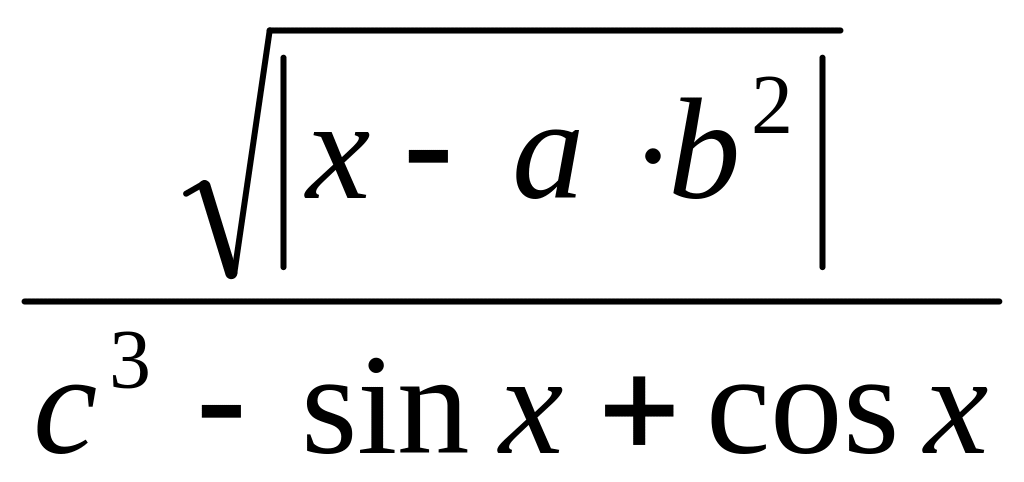 SQRT(ABS(X-A*SQR(B)))/(EXP(3*LN(C))-SIN(X)+COS(X))