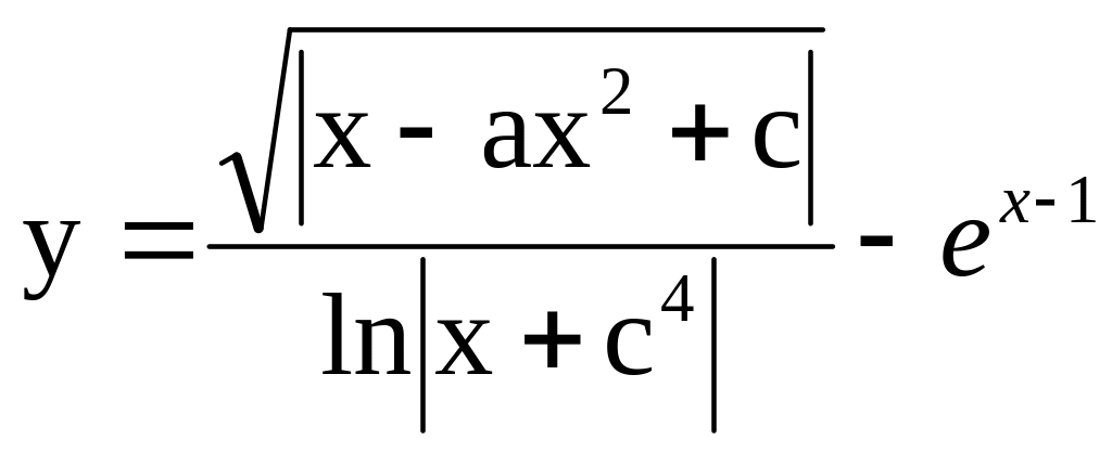 Y:=SQRT(ABS(X-A*SQR(X)+C))/LN(ABS(X+EXP(4*LN(X))))–EXP(X-1);