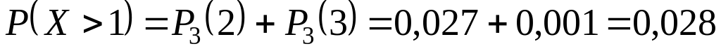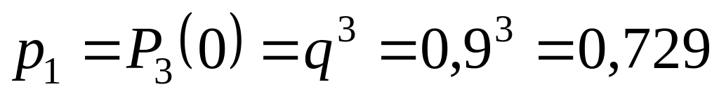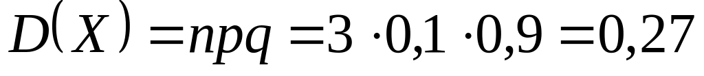 Приклад 9. Прилад складається з трьох незалежно працюючих елементів. Ймовірність того, що елемент не працює в довільний момент часу, дорівнює 0,1. Дискретна випадкова величина Х – число елементів, що не працюють у довільний момент часу, розподілена за біноміальним законом розподілу. Необхідно: