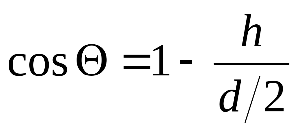 Крайовий кут змочування знаходять, по основних розмірах крапель ріди-ни, що наноситься на тверду поверхню: висоті h та ширині (діаметру) d рис. 4.