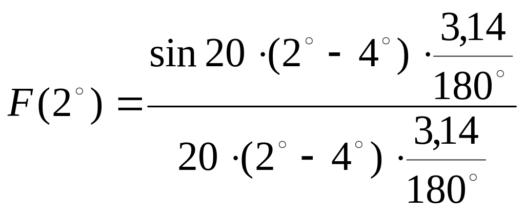 Рассчитаем диаграмму F(g) для 13-ти промежуточных точек в пределах 6° < g < 45° по формуле (3) и полученные результаты запишем в виде таблицы № 2.
