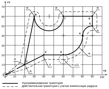 Величина компенсации радиуса будет равна: R+I