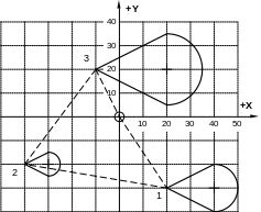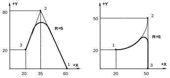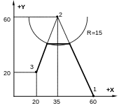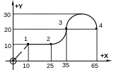 При программировании контура все точки должны задаваться обоими координатными значениями главной плоскости, даже если это требует повторения некоторых величин и, кроме того, нельзя задавать точку по одному углу и декартовой координате.
