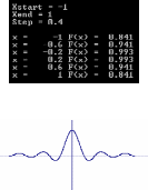 табулирование функции F(x) на отрезке [-1; 1] с шагом 0,4: