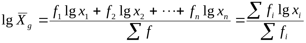 У логарифмованому вигляді формула середньої геометричної нагадує формулу, середньої арифметичної з тією лише різницею, що замість натуральних величин фігурують їх логарифми.