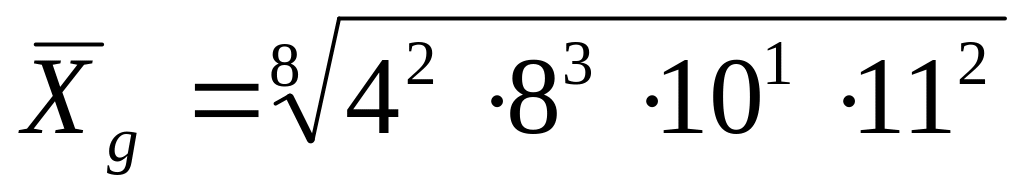 Якщо середня геометрична обчислюється для варіаційного ряду, то тоді сума частот є показником степені кореня, а частота кожного з варіантів – показником степені варіанта.