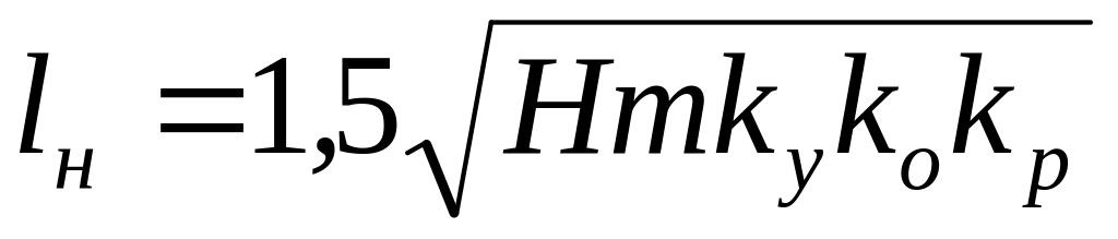 где m – мощность пласта, м; H – глубина расположения выработки, м; kу – коэффициент, характеризующий устойчивость вмещающих выработку боковых пород: для неустойчивых (Rc<40 МПа) пород kу=1,0; средней устойчивости (Rc=40..60 МПа) kу=0,8–0,6; устойчивых (Rc>60 МПа) kу=0,5–0,4; ko – коэффициент, характеризующий обрушаемость пород кровли пласта: для легкообрушающихся пород ko=1,0; средней обрушаемости ko=1,15 и труднообрушающихся ko=1,25; kp – коэффициент, учитывающий влияние расстояния выработки до пласта; при hн=10 м kp=1,0; при hн=15 м kp=0,95; при hн=20 м kp=0,85 (значения всех указанных выше величин справедливы для длины лавы не менее 180–220 м).