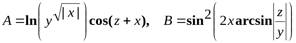 Вычислить выражения А и В при некоторых значениях входящих в них переменных x, y, z. Значения переменных выбрать самостоятельно, учитывая область допустимых значений А и В.