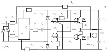 На приведенном рисунке: микросхема D1 - К140УД6, транзисторы: VT1 - KT361, VT2 - KT315, VT3 - KT817, VT4 - KT816, резисторы: R1 , R3-R8 - 1 кОм,