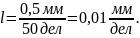 Например, если шаг винта h = 0,5 мм, а число делений на барабане n = 50, то точность круговой шкалы