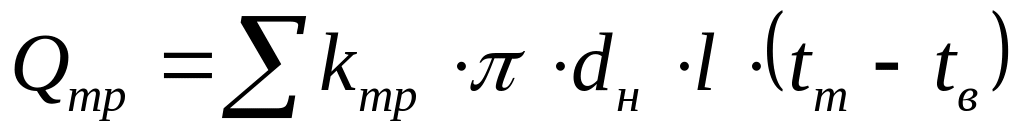 Визначаємо тепловий потік, , , від трубопроводів, відкрито прокладених у приміщенні по формулі: