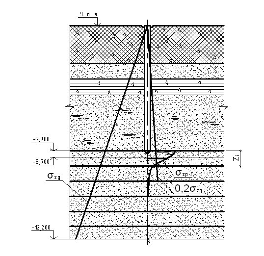 Вертикальное напряжение от собственного веса грунта на уровне подошвы