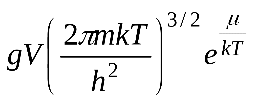 где k – постоянная Больцмана, Т – термодинамическая температура, – энергия квантового состояния, – химический потенциал частиц. Величина равна производной от энергии системы U по числу частиц N в ней, при условии, что объем и энтропия системы не изменяются: