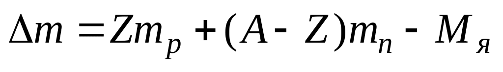 При образовании ядра из нуклонов происходит уменьшение его массы на величину m, которая называется дефектом масс.