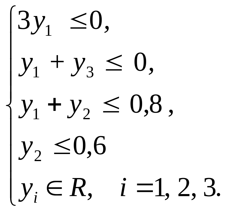 Найти значения переменных y1, y2, y3, удовлетворяющие условиям
