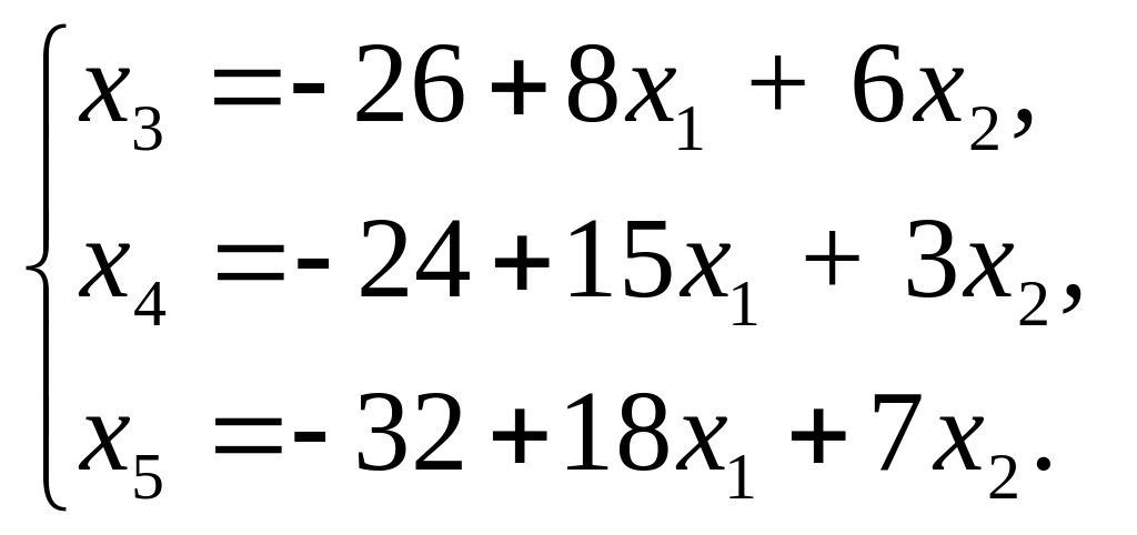 В качестве базисных переменных выберем дополнительные переменные. Выразим базисные переменные через неосновные: