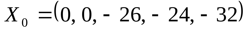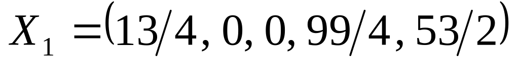 Вычислим для нее оценочные отношения в уравнениях, соответствующих недопустимым решениям: 26/8, 24/15, 32/18. Если увеличить значение переменной х1 до максимального из указанных значений (26/8), то значения переменных станут допустимыми. Новый базис: x1, x4, x5. Система ограничений примет вид:
