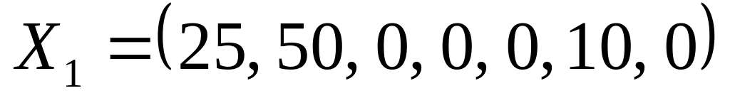 Ответ: X = (25, 50, 0, 5), общая длина концевых остатков 3 м.
