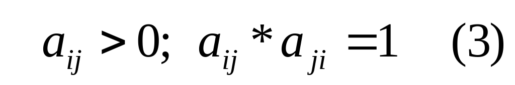 Применяются симметрично относительно главной диагонали аij=3 Aji=1/3 |