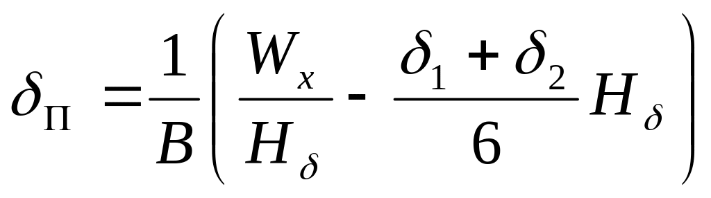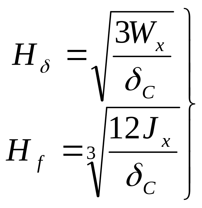 Тогда для оптимальной балки при выбранном значении высоты Н и сохранении значений или толщина пояса может быть определена по выражениям