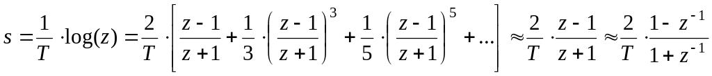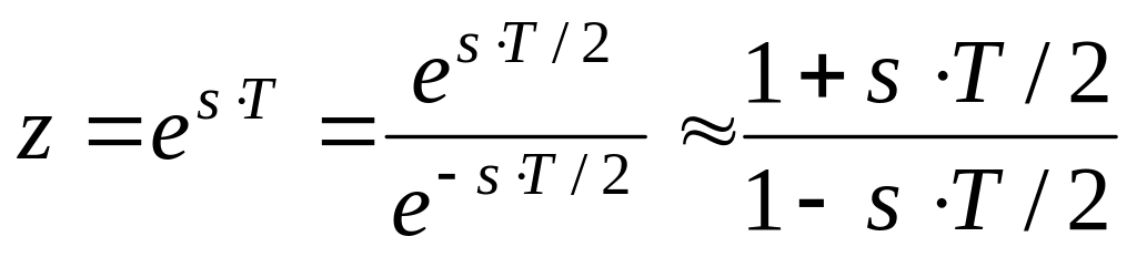 Обратное преобразование из s-плоскости в z-плоскость и его билинейная аппроксимация записываются следующим образом: