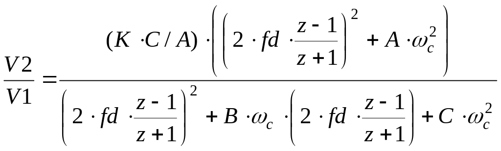 Далее, применив Z-преобразование к передаточной функции аналогового фильтра H(s), получим передаточную функцию цифрового фильтра H(z):